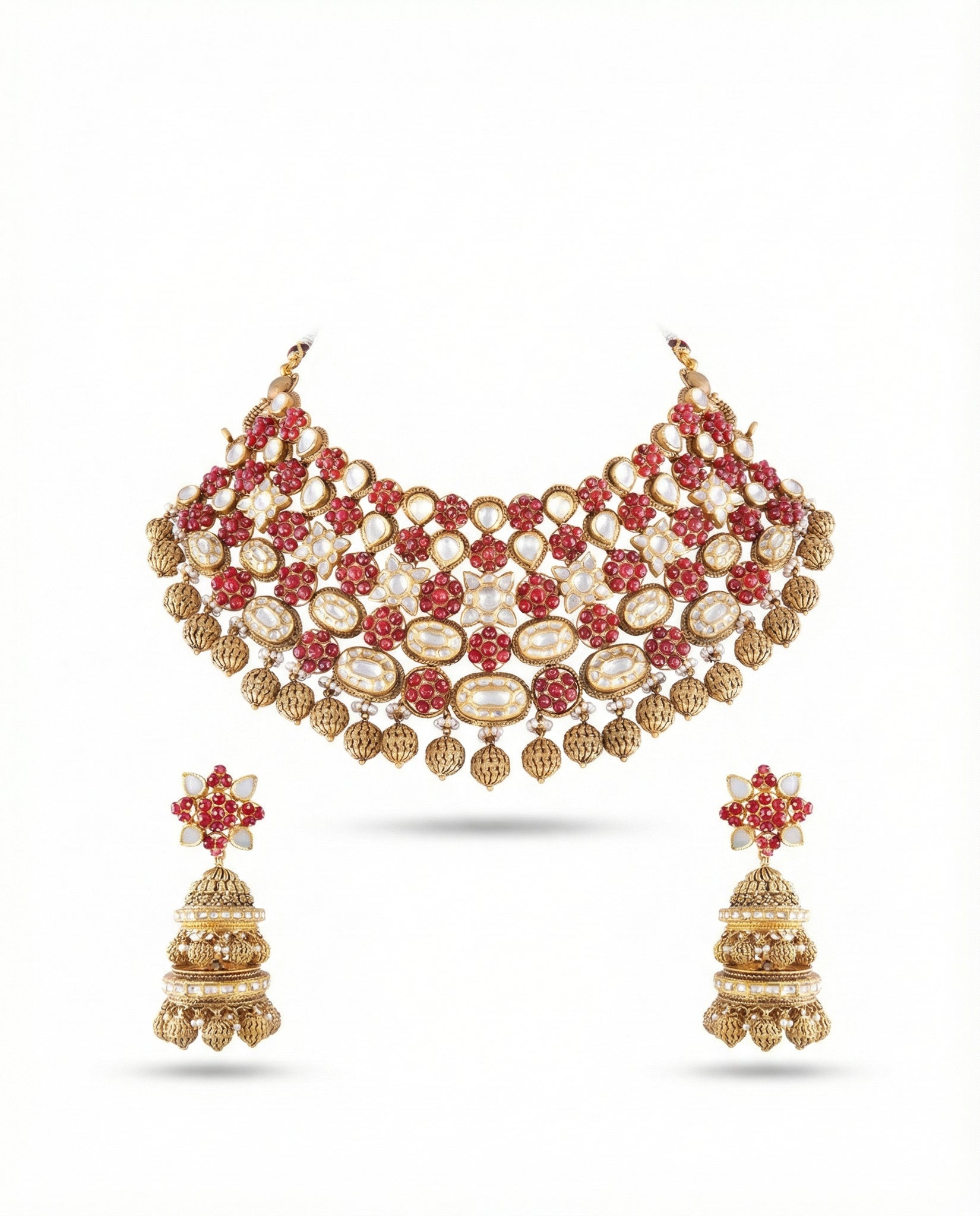 Royal Rubies & Polki: A Heritage Gold Necklace Suite